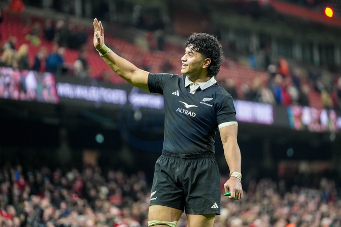 Wallace Sititi of New Zealand during the Quilter Nations Series 2025 match Wales vs New Zealand at Principality Stadium, Cardiff, United Kingdom, 22nd November 2025, Credit:Andrew Lewis/News Images / Avalon