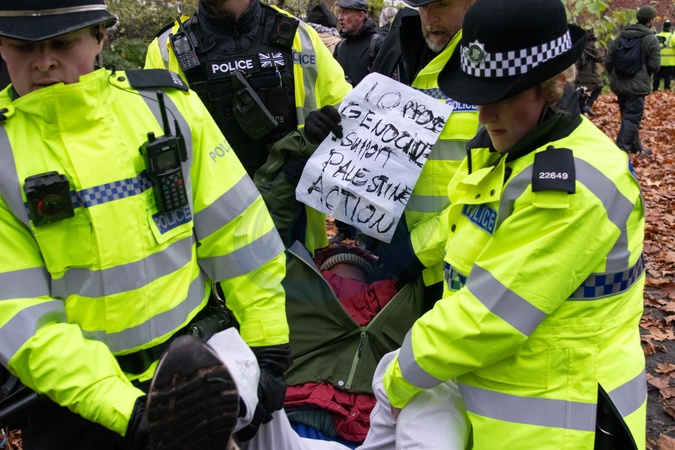 London, UK, 22nd November 2025 - Defend Our Juries protest in Tavistock Square as part of their "Lift The Ban" campaign, protestors openly expressed support for the proscribed organisation Palestine Action, by writing "I support Palestine Action" on placards and sitting on the floor, they were all arrested under the terrorism act en masse., Credit:Will Colebourne / Avalon