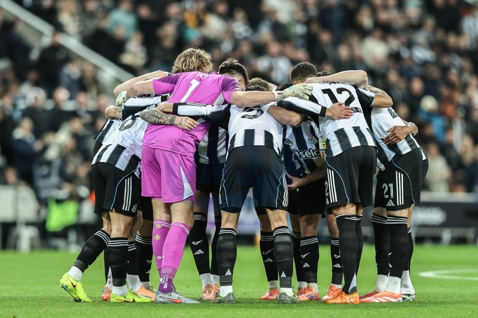 Newcastle United have a team huddle before the game during the Premier League match Newcastle United vs Manchester City at St. James's Park, Newcastle, United Kingdom, 21st November 2025, Credit:Ae Cosgrove/News Images / Avalon