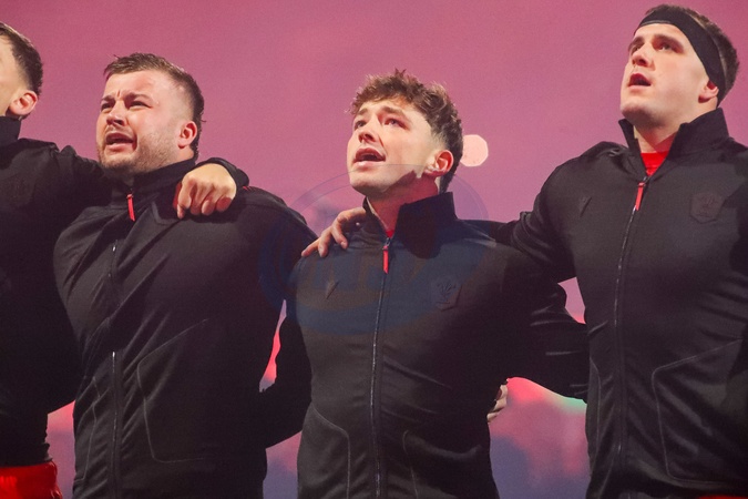Harri Deaves Dan Edwards and Morgan Morse of Wales sing the national anthem during the Quilter Nations Series 2025 match Wales vs New Zealand at Principality Stadium, Cardiff, United Kingdom, 22nd November 2025, Credit:Andrew Lewis/News Images / Avalon