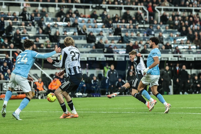 Harvey Barnes of Newcastle Untied scores to make it 1-0 during the Premier League match Newcastle United vs Manchester City at St. James's Park, Newcastle, United Kingdom, 21st November 2025, Credit:Ae Cosgrove/News Images / Avalon