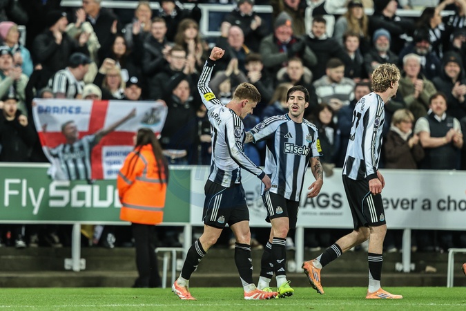 Harvey Barnes of Newcastle Untied celebrates his goal to make it 1-0 during the Premier League match Newcastle United vs Manchester City at St. James's Park, Newcastle, United Kingdom, 21st November 2025, Credit:Ae Cosgrove/News Images / Avalon