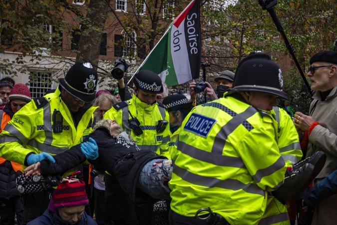 Defend Our Juries Support Protest for Palestine Action – London. A protest was held in Central London in support of the recently proscribed group Palestine Action. Demonstrators displayed banners and placards reading "I oppose genocide — I support Palestine Action” and condemned the government's decision to label the group as a terrorist organisation. The demonstration saw a significant police presence, with multiple protesters detained and taken away during the protest., Credit:Zak Irfan / Avalon
