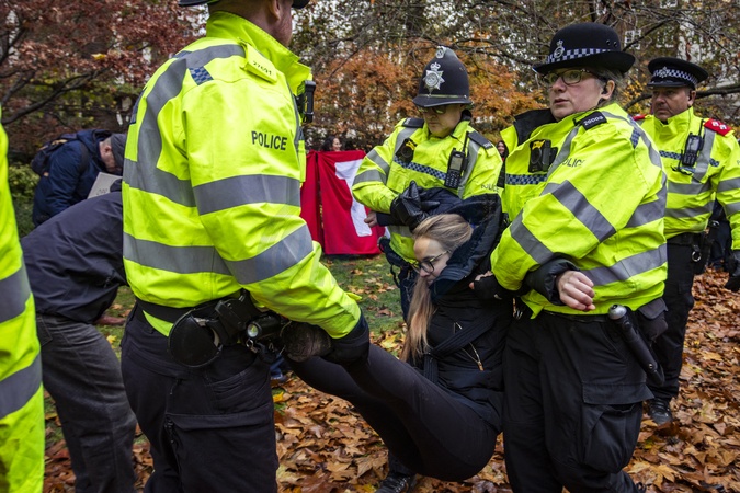 Defend Our Juries Support Protest for Palestine Action – London. A protest was held in Central London in support of the recently proscribed group Palestine Action. Demonstrators displayed banners and placards reading "I oppose genocide — I support Palestine Action” and condemned the government's decision to label the group as a terrorist organisation. The demonstration saw a significant police presence, with multiple protesters detained and taken away during the protest., Credit:Zak Irfan / Avalon