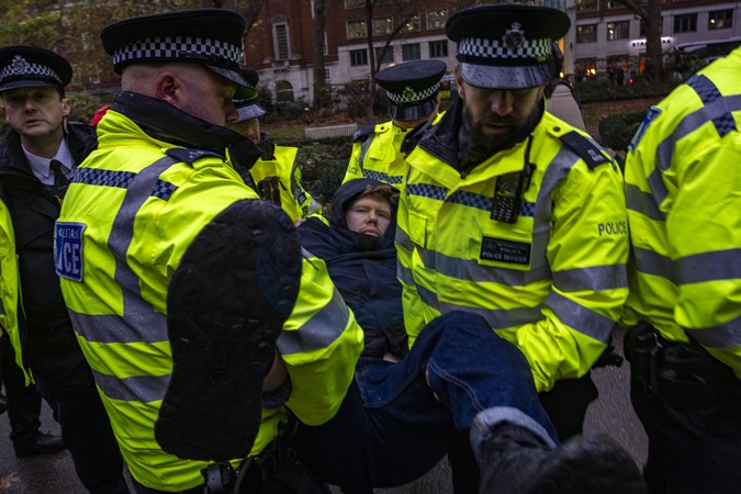 Defend Our Juries Support Protest for Palestine Action – London. A protest was held in Central London in support of the recently proscribed group Palestine Action. Demonstrators displayed banners and placards reading "I oppose genocide — I support Palestine Action” and condemned the government's decision to label the group as a terrorist organisation. The demonstration saw a significant police presence, with multiple protesters detained and taken away during the protest., Credit:Zak Irfan / Avalon