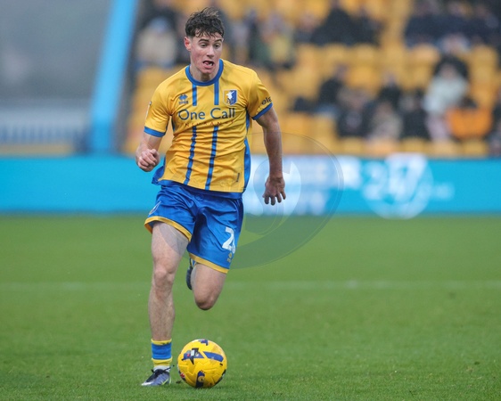 Joe Gardner of Mansfield Town breaks with the ball during the Sky Bet League 1 match Mansfield Town vs Huddersfield Town at One Call Stadium, Mansfield, United Kingdom, 22nd November 2025, Credit:Richard Bierton/News Images / Avalon