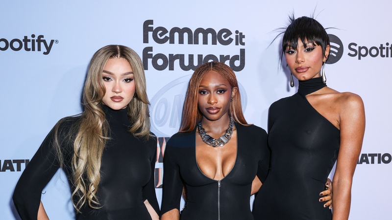 BEVERLY HILLS, LOS ANGELES, CALIFORNIA, USA - NOVEMBER 21: Singers Stella Quaresma, Renee Downer and Jorja Douglas of British girl group FLO arrive at the 4th Annual Femme It Forward 'Give Her FlowHERS' Awards Gala 2025 held at The Beverly Hilton Hotel on November 21, 2025 in Beverly Hills, Los Angeles, California, United States., Credit:Xavier Collin / Avalon