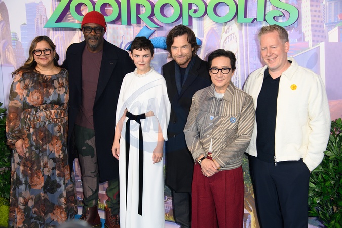 (L-R) - Yvett Merino, Idris Elba, Ginnifer Goodwin, Jason Bateman, Ke Huy Quan, Director Jared Bush attends The "Zootropolis 2" UK Premiere at Picturehouse Central, London, England, UK on Sunday 23 November, 2025., Credit:Justin Ng / Avalon