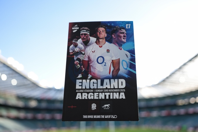 Todays official match day program during the Quilter Nations Series 2025 match England vs Argentina at Allianz Stadium, Twickenham, United Kingdom, 23rd November 2025, Credit:Mark Cosgrove/News Images / Avalon