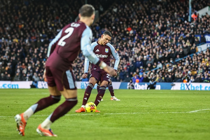 Morgan Rogers of Aston Villa scores to make it 1-2 during the Premier League match Leeds United vs Aston Villa at Elland Road, Leeds, United Kingdom, 23rd November 2025, Credit:Ae Cosgrove/News Images / Avalon