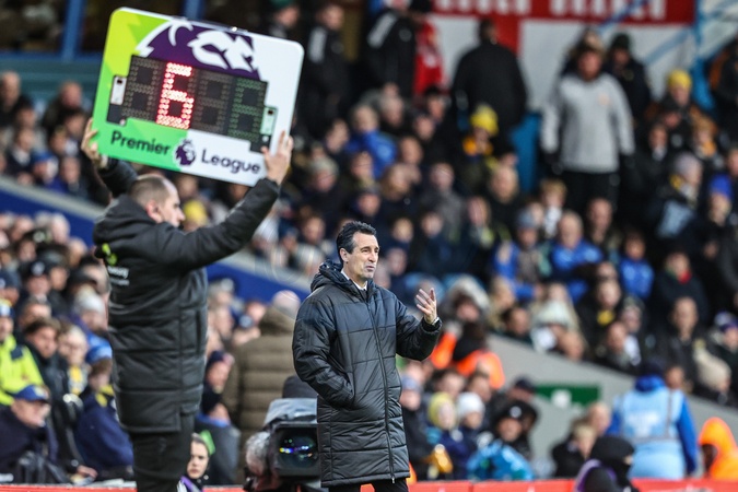 Unai Emery manager of Aston Villa looks on as 6 minutes are added on to the first half during the Premier League match Leeds United vs Aston Villa at Elland Road, Leeds, United Kingdom, 23rd November 2025, Credit:Ae Cosgrove/News Images / Avalon