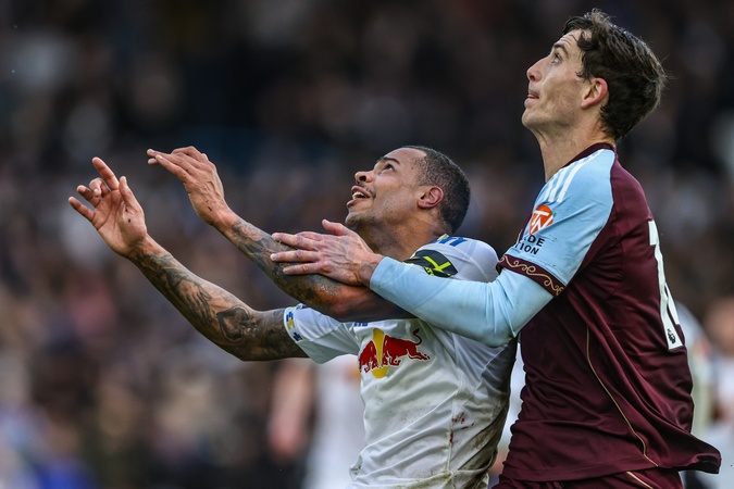 Lukas Nmecha of Leeds United and Pau Torres of Aston Villa battle for the ball during the Premier League match Leeds United vs Aston Villa at Elland Road, Leeds, United Kingdom, 23rd November 2025, Credit:Ae Cosgrove/News Images / Avalon