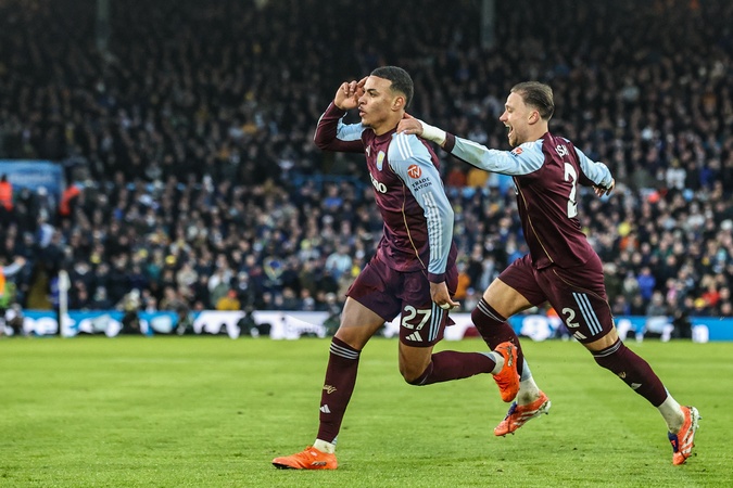 Morgan Rogers of Aston Villa celebrates his goal to make it 1-2 during the Premier League match Leeds United vs Aston Villa at Elland Road, Leeds, United Kingdom, 23rd November 2025, Credit:Ae Cosgrove/News Images / Avalon
