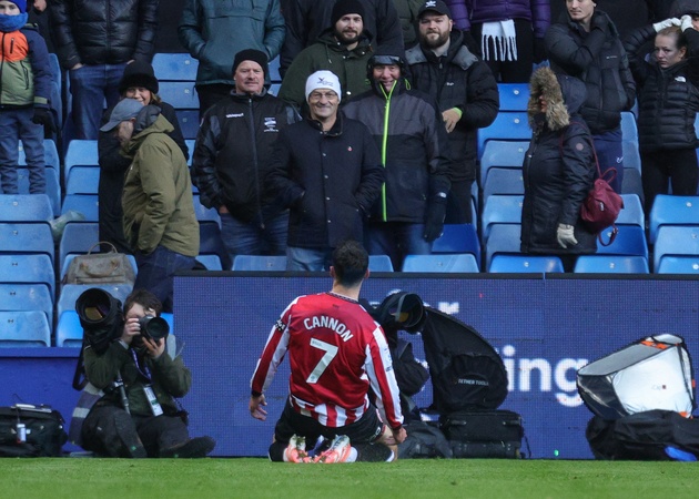 Thomas Cannon of Sheffield United celebrates his goal to make it 0-3 during the Sky Bet Championship match Sheffield Wednesday vs Sheffield United at Hillsborough, Sheffield, United Kingdom, 23rd November 2025, Credit:Richard Bierton/News Images / Avalon