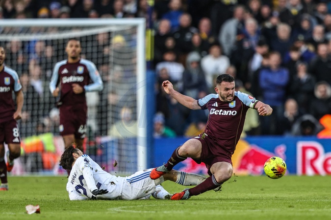 JohnMcGinn of Aston Villa is tackled by Ao Tanaka of Leeds United during the Premier League match Leeds United vs Aston Villa at Elland Road, Leeds, United Kingdom, 23rd November 2025, Credit:Ae Cosgrove/News Images / Avalon