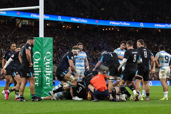 England stop Argentina from pushing over the goal line during the Quilter Nations Series 2025 match England vs Argentina at Allianz Stadium, Twickenham, United Kingdom, 23rd November 2025, Credit:Mark Cosgrove/News Images / Avalon