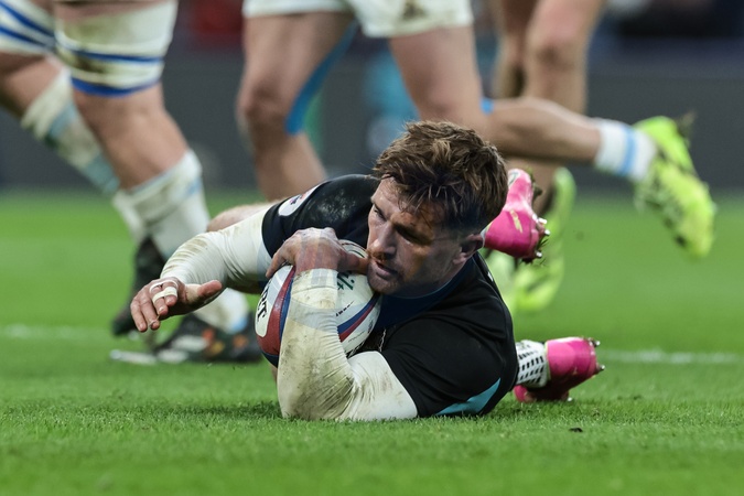 Henry Slade of England goes over for a try during the Quilter Nations Series 2025 match England vs Argentina at Allianz Stadium, Twickenham, United Kingdom, 23rd November 2025, Credit:Mark Cosgrove/News Images / Avalon