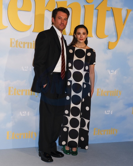 Miles Teller and Elizabeth Olsen attending the Eternity UK Premiere at the Everyman Battersea in Battersea Power Station, London, United Kingdom, Credit:Cat Morley / Avalon