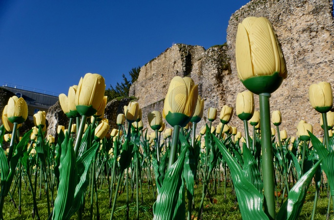 The grounds of Reading Abbey Ruins are covered with yellow tulip lights ready for the evenings Illuminate Reading., Credit:Geoffrey Swaine / Avalon