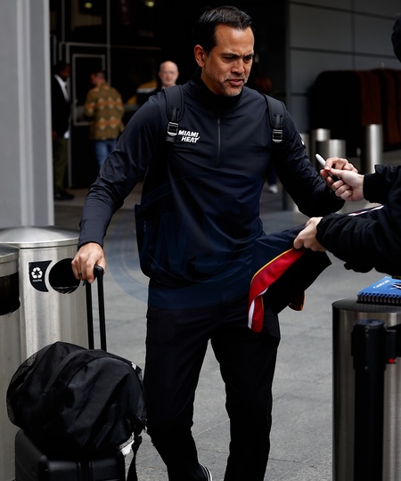 Miami Heat Basketball Head Coach Erik Spoelstra leaves The Four seasons Hotel enroute to the Xfinjity Mobile Arena to play the Philadelphia 76er's in Philadelphia on November 23, 2025 . ./Pacifccoastnews(Exclusive), Credit:William T. Wade Jr./Photography / Avalon
