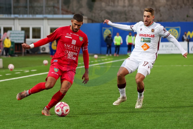 Stadio dei Marmi. Soccer match, Serie B, Day 13, Carrarese vs. Reggiana. Pictured: Imperiale and Libutti Carrara, Italy 22 November 2025, Credit:Gabriele Siri / Avalon