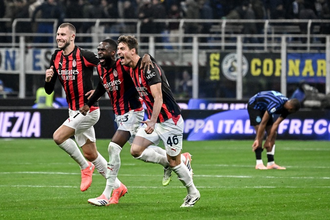 San Siro Stadium, Matchday 12 of the Serie A ENILIVE Championship. Inter vs. Milan. Strahinja PAVLOVIC, Fikayo TOMORI, and Matteo GABBIA run to hug Maignan. Milan, Italy 23 November 2025, Credit:Nicola Marfisi / Avalon