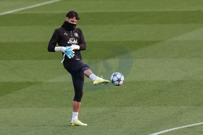 Manchester City goalkeeper James Trafford during the UEFA Champions League training session Matchday 5 of 8 Manchester City vs Bayer 04 Leverkusen at Etihad Campus, Manchester, United Kingdom, 24th November 2025, Credit:Mark Cosgrove/News Images / Avalon