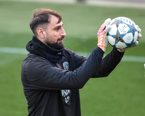 Manchester City goalkeeper Gianluigi Donnarumma during the UEFA Champions League training session Matchday 5 of 8 Manchester City vs Bayer 04 Leverkusen at Etihad Campus, Manchester, United Kingdom, 24th November 2025, Credit:Mark Cosgrove/News Images / Avalon