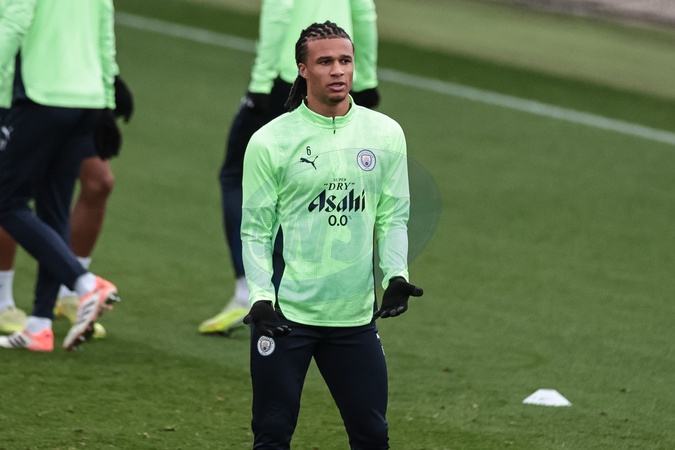 Nathan Ake of Manchester City during the UEFA Champions League training session Matchday 5 of 8 Manchester City vs Bayer 04 Leverkusen at Etihad Campus, Manchester, United Kingdom, 24th November 2025, Credit:Mark Cosgrove/News Images / Avalon