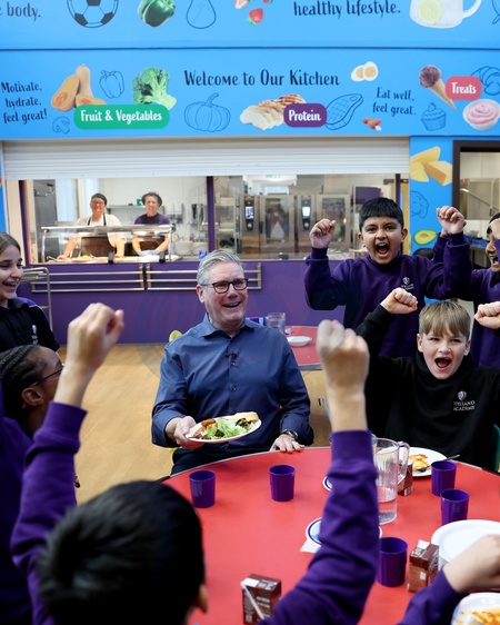24/11/2025. Peterborough, United Kingdom. Prime Minister Keir Starmer and Education Secretary Bridget Phillipson visit Welland Academy to meet children who have benefitted from the governments free school meals initiative., Credit:Simon Dawson / Avalon