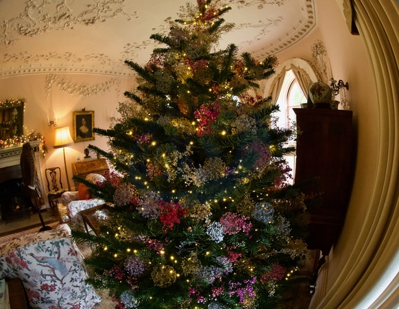 The beautifully decorated rooms at Greys Court. Grab your programme, ticket and opera glasses at Greys Court for a warm nostalgic Christmas inspired by the joy of Victorian theatre. From 22 November to 4 January, visitors can immerse themselves in a wonderland of theatrical decorations, all inspired by the characters of Henry Irving, Lady Brunner's grandfather, and the magic of Victorian theatre. Beautifully adorned trees, garlands, and twinkling fairy lights welcome you against a background of candles, warmth and the scents of spices from Lady Brunner's kitchen.This year, the garden continues the theatrical theme, infusing festive touches with the continued theatrical legacy of Lady Brunner and her brother, Laurence Irving who was a set designer. Wreaths, twinkling lights and oversized baubles add gorgeous sparkle on a grey day., Credit:Geoffrey Swaine / Avalon