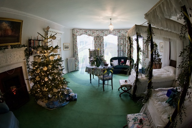 The beautifully decorated rooms at Greys Court. Grab your programme, ticket and opera glasses at Greys Court for a warm nostalgic Christmas inspired by the joy of Victorian theatre. From 22 November to 4 January, visitors can immerse themselves in a wonderland of theatrical decorations, all inspired by the characters of Henry Irving, Lady Brunner's grandfather, and the magic of Victorian theatre. Beautifully adorned trees, garlands, and twinkling fairy lights welcome you against a background of candles, warmth and the scents of spices from Lady Brunner's kitchen.This year, the garden continues the theatrical theme, infusing festive touches with the continued theatrical legacy of Lady Brunner and her brother, Laurence Irving who was a set designer. Wreaths, twinkling lights and oversized baubles add gorgeous sparkle on a grey day., Credit:Geoffrey Swaine / Avalon