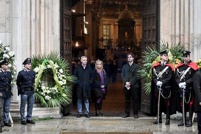 Cristiano Ardenzi, nephews Matteo , Camilla pictured during Ornella Vanoni's funeral in Milan Nov 24th 2025, Credit:Nicola Marfisi/AGF / Avalon