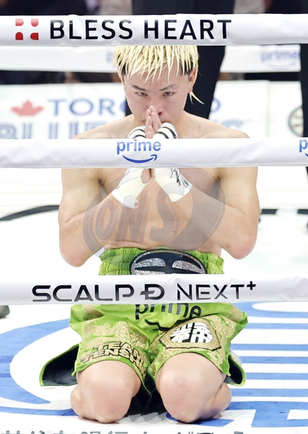 Tenshin Nasukawa of Japan kneels on the mat after his loss to compatriot Takuma Inoue in their WBC bantamweight world title bout at Toyota Arena Tokyo on Nov. 24, 2025., Credit:Kyodo/Newscom / Avalon