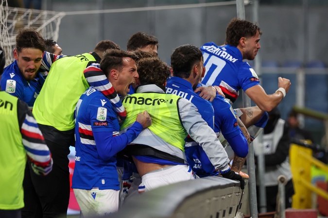 November 24, 2025, Genoa. Serie B football championship, Sampdoria vs. Juve Stabia. Pictured is Sampdoria's celebration., Credit:Gabriele Siri/AGF / Avalon