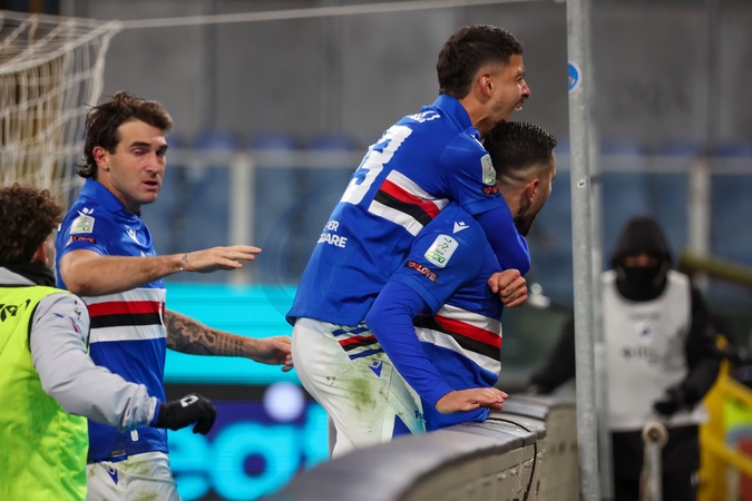 November 24, 2025, Genoa. Serie B football championship, Sampdoria vs. Juve Stabia. Pictured is Sampdoria's celebration., Credit:Gabriele Siri/AGF / Avalon