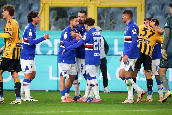 November 24, 2025, Genoa. Serie B football championship, Sampdoria vs. Juve Stabia. Pictured: Sampdoria at the end of the match., Credit:Gabriele Siri/AGF / Avalon
