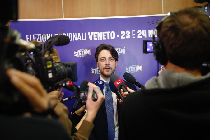 November 24, 2025 Padua, the center-right candidate wins the regional elections in Veneto. Pictured is newly elected Alberto Stefani., Credit:Mirco Toniolo/AGF / Avalon