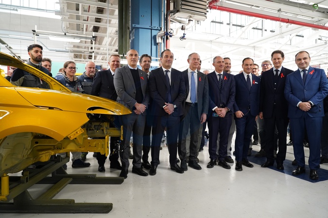 Presentation of the new Fiat 500 hybrid. Pictured are some of the institutional figures present, including Adolfo Urso, Minister of Enterprise and Made in Italy, John Elkann, Chairman of the Stellantis Board of Directors, and the new CEO, Antonio Filosa. Turin, Nov 25th 2025, Credit:/AGF / Avalon