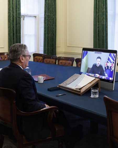 25/11/2025. London, United Kingdom. Prime Minister Keir Starmer holds a video call with partners from the Coalition of the Willing alongside Foreign Secretary Yvette Cooper, Defence Secretary John Healey and Chief of the Defence Staff Air Chief Marshal Sir Richard Knighton in the Cabinet Room in 10 Downing Street., Credit:Lauren Hurley / Avalon