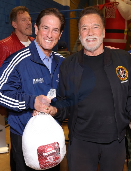 25 November 2025 . Los Angeles, California - Nathan Hochman, Governor Arnold Schwarzenegger At 44th Annual Miracle on 1st Street Turkey Giveaway! held at The Hollenbeck Youth Center in Los Angeles., Credit:Sadou Faye / Avalon