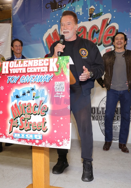 25 November 2025 . Los Angeles, California - Governor Arnold Schwarzenegger At 44th Annual Miracle on 1st Street Turkey Giveaway! held at The Hollenbeck Youth Center in Los Angeles., Credit:Sadou Faye / Avalon