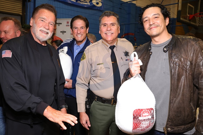 25 November 2025 . Los Angeles, California - Governor Arnold Schwarzenegger, Nathan Hochman, Sheriff Robert G. Luna, Gabriel Luna At 44th Annual Miracle on 1st Street Turkey Giveaway! held at The Hollenbeck Youth Center in Los Angeles., Credit:Sadou Faye / Avalon