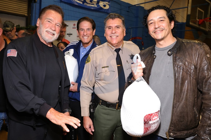 25 November 2025 . Los Angeles, California - Governor Arnold Schwarzenegger, Nathan Hochman, Sheriff Robert G. Luna, Gabriel Luna At 44th Annual Miracle on 1st Street Turkey Giveaway! held at The Hollenbeck Youth Center in Los Angeles., Credit:Sadou Faye / Avalon