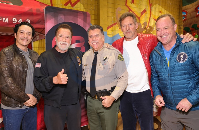 25 November 2025 . Los Angeles, California - Gabriel Luna, Governor Arnold Schwarzenegger, Sheriff Robert G. Luna, Ralf Moeller, Matt Iseman At 44th Annual Miracle on 1st Street Turkey Giveaway! held at The Hollenbeck Youth Center in Los Angeles., Credit:Sadou Faye / Avalon