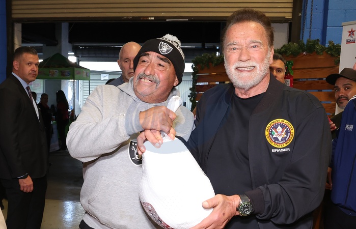 25 November 2025 . Los Angeles, California - Governor Arnold Schwarzenegger, Guest At 44th Annual Miracle on 1st Street Turkey Giveaway! held at The Hollenbeck Youth Center in Los Angeles., Credit:Sadou Faye / Avalon