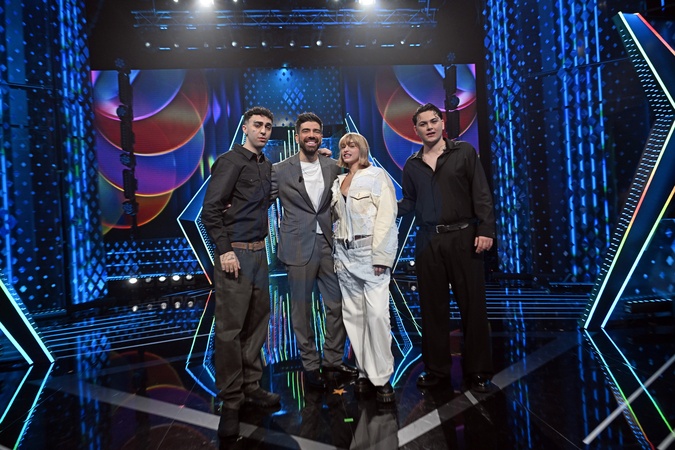 Rai 1 Tv Show, television program selection for Sanremo Giovani 2025. Pictured is Gianluca Gazzoli with Welo, Caro Wow, and Petit. . Rome, Italy 25 November 2025, Credit:Maria Laura Antonelli / Avalon