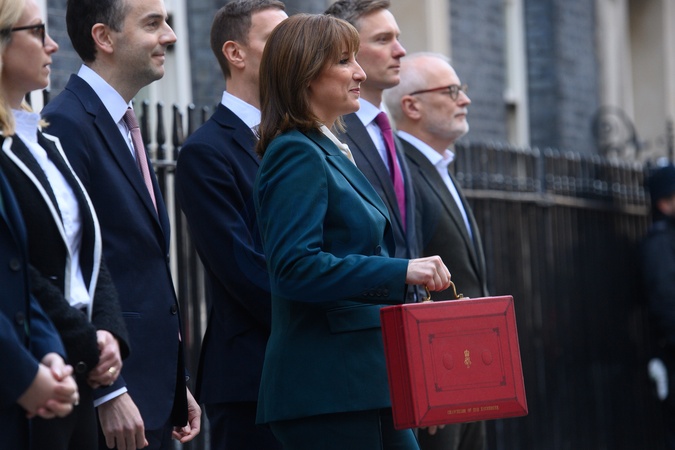 Rachel Reeves - Chancellor of The Exchequer holds up the red box as she departs 11 Downing Street in London, England, UK on Wednesday 26 November, 2025 to deliver her Autumn Budget 2025., Credit:Justin Ng / Avalon