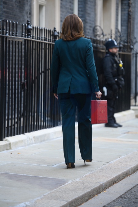 Rachel Reeves - Chancellor of The Exchequer holds up the red box as she departs 11 Downing Street in London, England, UK on Wednesday 26 November, 2025 to deliver her Autumn Budget 2025., Credit:Justin Ng / Avalon