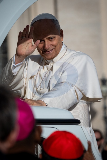 Pope Leo XIV leads his traditional Wednesday General Audience in St. Peter's Square in Vatican City, Vatican, on 26 November 2025., Credit:Stefano Costantino TTL / Avalon